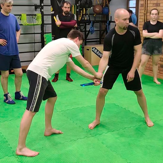 Гарда не позволяет руке соскальзывать на лезвие клинка, предотвращая повреждение руки от собственного оружия. Хотя копии ножей не имеют острого лезвия, наличие гарды на них тоже важно. Рукоять должна быть достаточно удобной для тренирующегося, обязательно нескользкой. Избегайте излишнего удобства и эргономичных выемок, чтобы тренирующийся был готов владеть любым ножом.